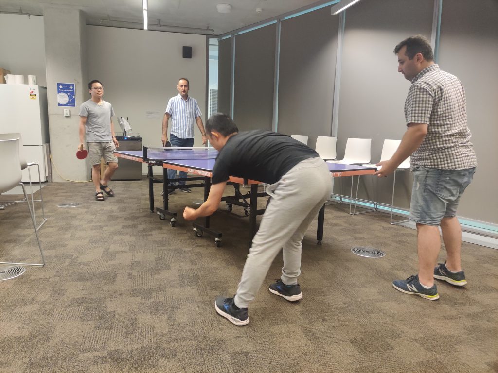 Habe dann meinen Laptop aufgeklappt und ein bisschen ein warmes, heimatliches Gefühl gehabt. Die letzten Tage waren eigentlich permanent neuer Input und jetzt den Laptop aufzuklappen und in den gewohnten „Arbeitsmodus“ zu wechseln, war irgendwie gut in dem Moment. Boris hat mich dann noch in das örtliche Einkaufszentrum zum Mittagessen geschleppt und der Tag endete für mich mit Tischtennis mit den neuen Kollegen: