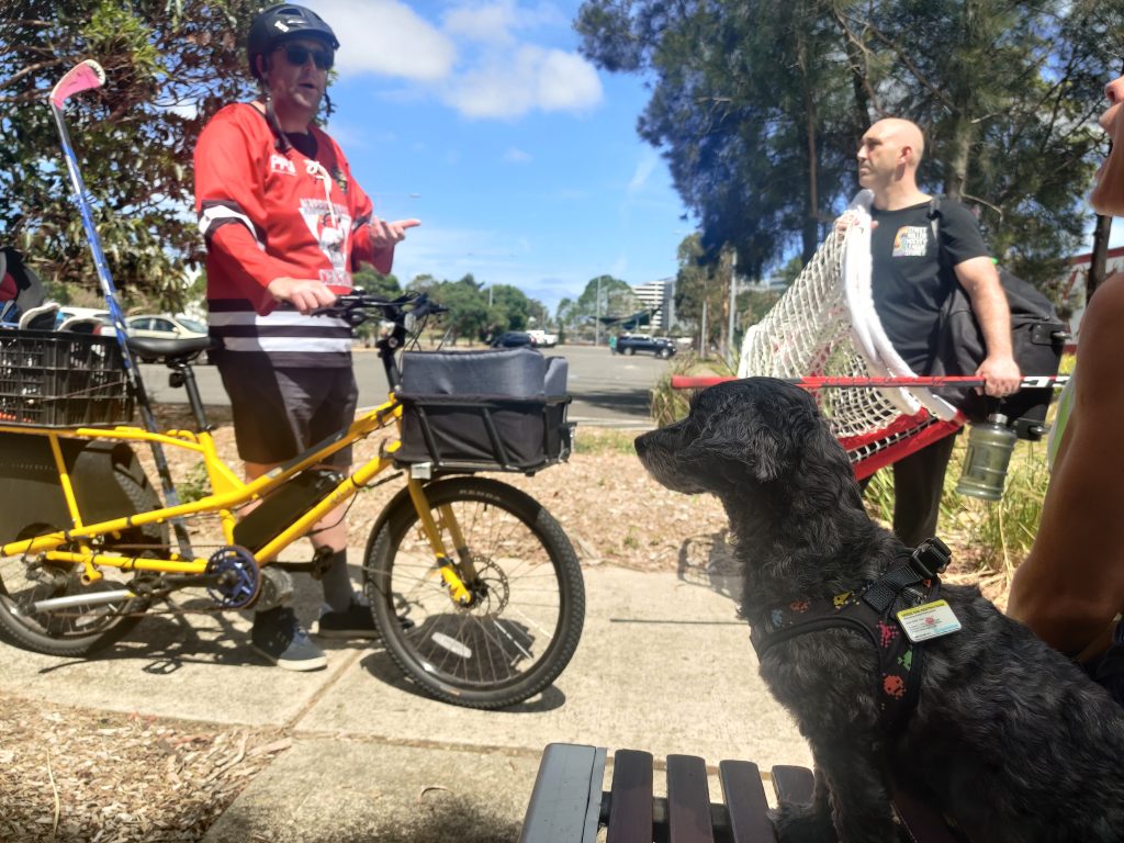 Und da kommt das Fahrrad ins Spiel. In Deutschland für mich ausschließlich für Hunderunden und die Fahrt zum Inlinehockey genutzt, werden Fahrräder hier in Sydney zu einem echten Freund. Und entsprechend gestaltet sich hier auch die Vielfalt. Ganz verrückt ist, dass es hier sehr viele kleine Lastenräder gibt, die mit zwei Akkus und Motor ausgestattet sind. Hört sich erstmal nicht aufregend an. Aufregend wird es erst, wenn man schnallt, dass die Dinger alle ein Gaspedal haben. Ähnlich wie in Deutschland die Shimano-Schaltungen funktionieren, kann man hier mit den Rädern einfach mit dem Daumen beschleunigen. Treten muss man auch nicht. Entsprechend fahren 80% dieser Gefährte hier rum, ohne dass jemals jemand tritt. Besonders spannend finde ich daran, dass das halt eigentlich eine echte Alternative wäre, um den Stadtverkehr in den Griff zu bekommen. Hier ist es da ähnlich wie in der Heimat, in 2 von 3 Autos sitzt nur eine Nase – vermutlich auf dem Weg zur oder zurück von der Arbeit. Naja, lange Rede, kurzer Sinn: Marc hatte mir ja beim ersten Training gesagt, dass ich sein Ersatzrad haben könne. Und er hat sein Wort gehalten. Entsprechend war ich dann am Donnerstagabend der zweiten Woche stolzer Leih-Besitzer dieses Mountainbikes: