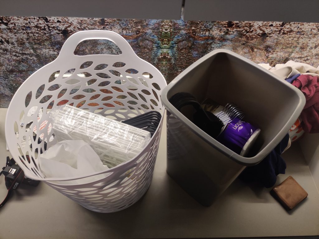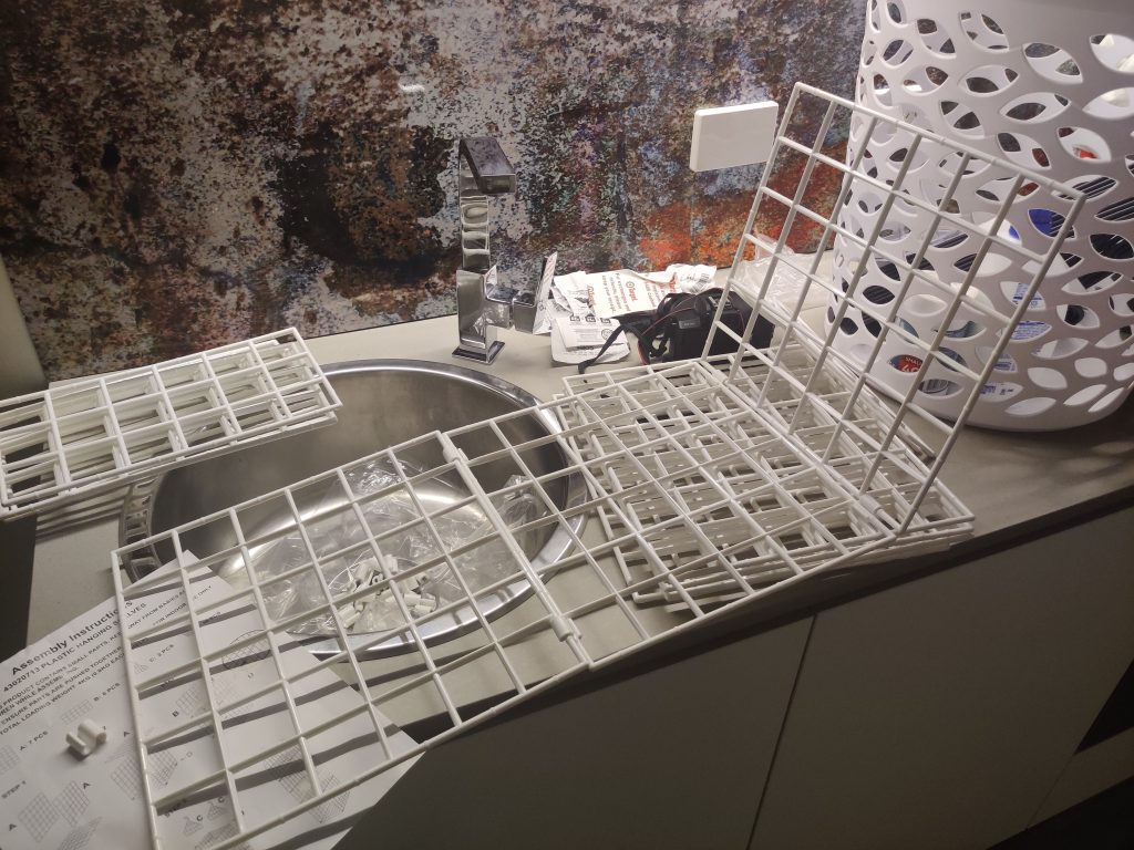 Bin dann auch direkt noch losgezottelt und habe ein bisschen Ausstattung geholt. Leider gibt es weder Kleiderhaken, Wäschesack noch sonstige Aufhängemöglichkeiten. Keinen Mülleimer und so weiter. Habe ich also erstmal geshoppt und dazu dann auch gleich noch so ein Ablageteil aus Plastik geholt: