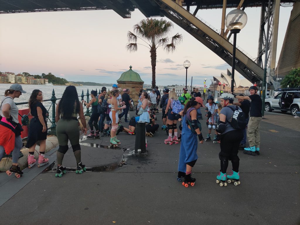 Nachdem ich nun insbesondere Marc und Nina kennengelernt und wir Nummern ausgetauscht hatten, war ich auch schon promt zum Cityskate eingeladen. Was ist das? Habe ich mich auch gefragt. Wer auf die Karte schauen will: die Veranstaltung läuft so ab, dass man sich mit 30-70 Leuten am Conventioncenter trifft und dann entlang der Küste östlich bis zum Opera House skatet. Dabei geht es durch Einkaufsstraßen, Bahnhöfe und über normale Straßen. Die Eindrücke dabei kann man schwer in Worte fassen. Ich lasse mal ein paar Bilder und Videos sprechen: