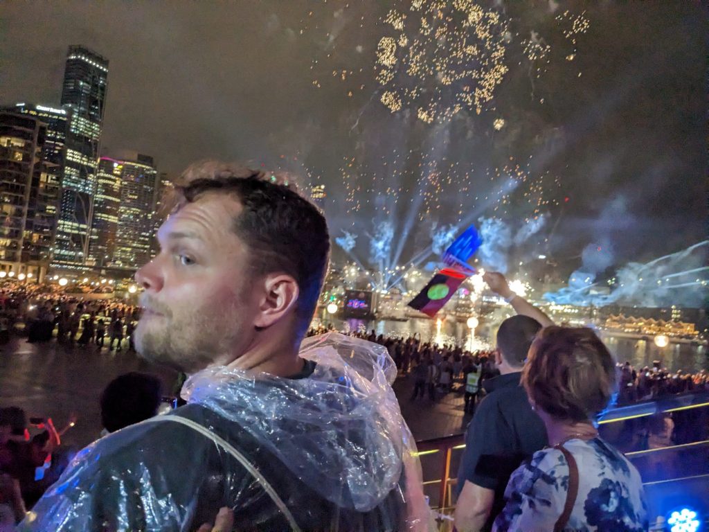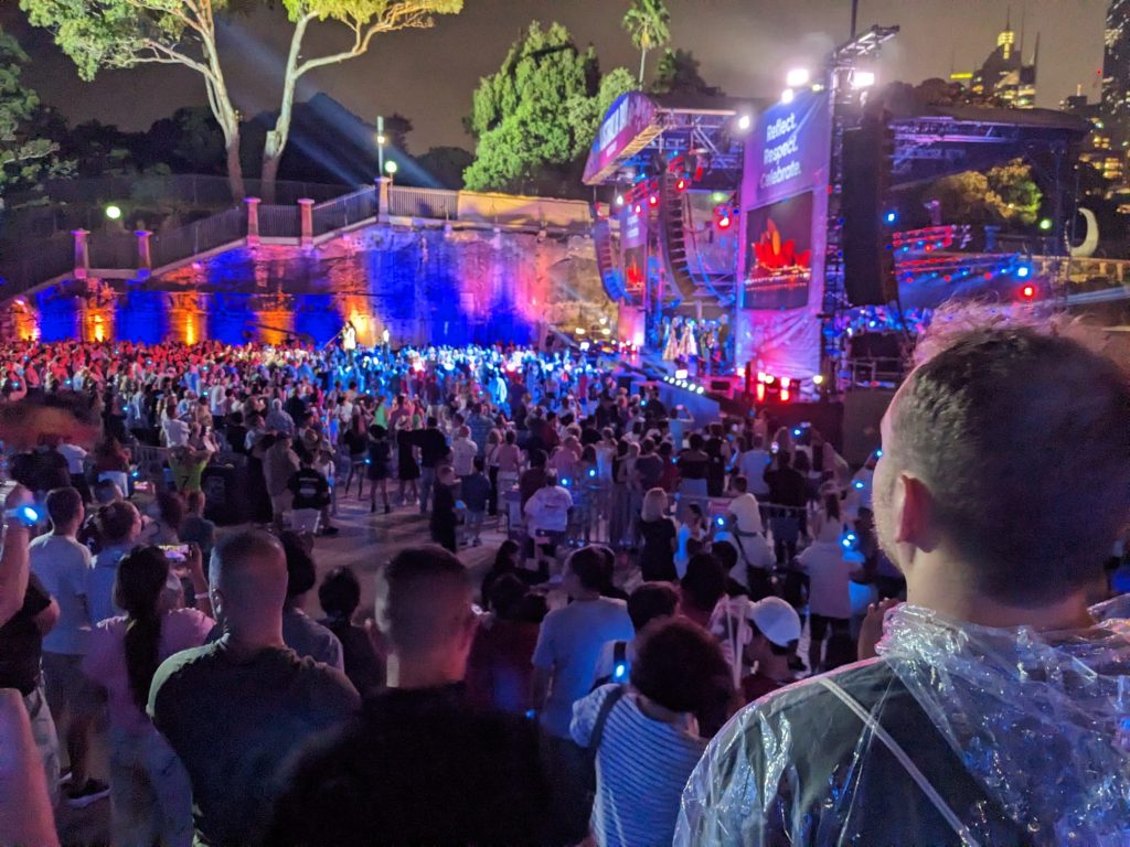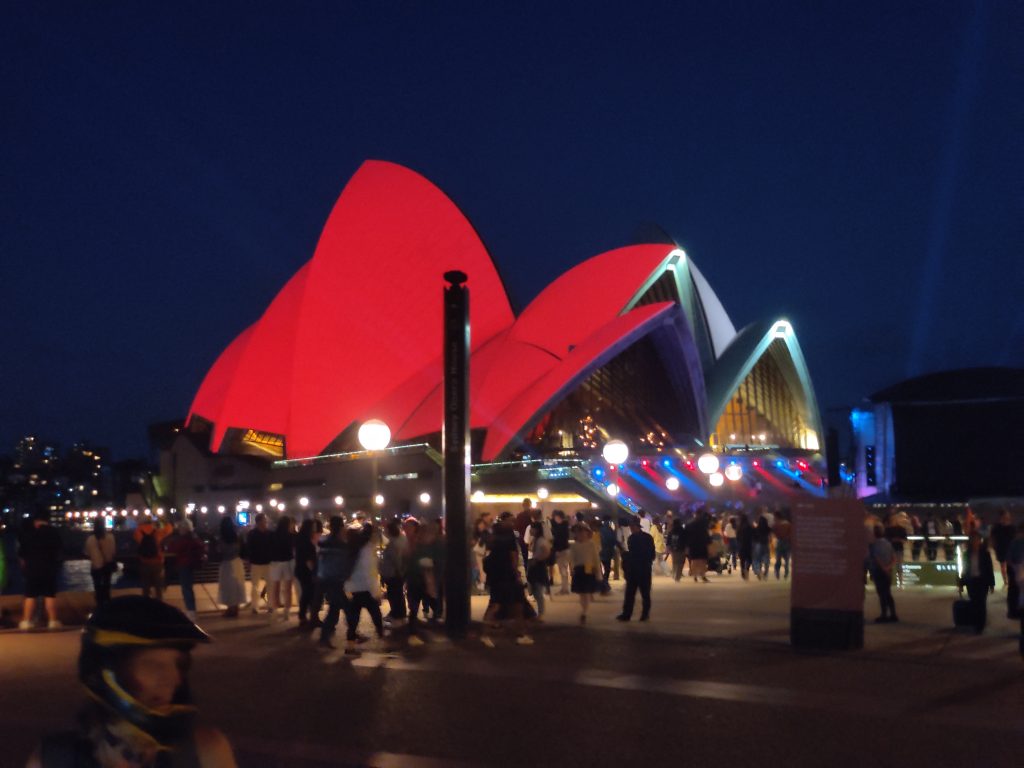 Bevor wir jetzt allerdings in die Footage des Aussiedays einsteigen, noch ein paar Gedanken dazu. Es ist hier nämlich so, dass wie überall in der Welt, auch den Aussies aufgefallen ist, dass die Nummer mit der Kolonie und der Ausrottung der Aborigines aus heutiger Sicht ja nicht so richtig korrekt war. Man tut also was man kann hier, um zu würdigen, dass das Land „eigentlich“ ja den Ureinwohnern gehört. Entsprechend kommen diese Einblendungen im Fernsehen, im Radio, in der Bahn und auch sonst eigentlich überall. Man ist sogar so weit gegangen, auch die Flagge der Aborigines auf die Harbour Bridge zu hängen – allerdings erst letztes Jahr. Aber den Tag der Anlandung und damit ja nunmal auch der Unterdrückung der Aborigines immer noch mit einem riesigen Tamtam und Feuerwerk zu feiern, das lässt man sich natürlich nicht nehmen. Fand ich irgendwie befremdlich. So zieht sich dann auch das Motto der Veranstaltung durch. Aussie des Jahres ist eine Aktivistin für Bodypositivity, irgendein Typ im Rollstuhl wird im Superman-Kostüm an Seilen über den Hafen geflogen und so weiter. Irgendwie alles befremdlich. Aber sei es drum, wir hatten Spaß.