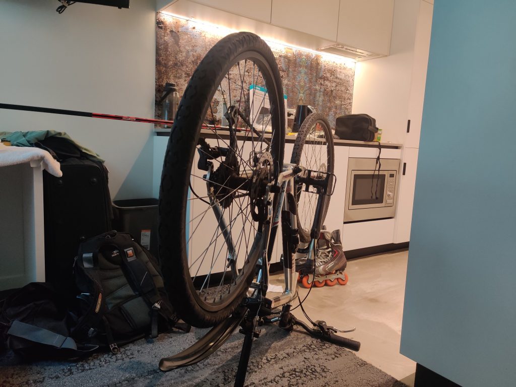Habe leider kein Foto, wie die Haken über den Türen hängen, aber ich denke man kann es sich vorstellen. Damit war meine Bude dann eingerichtet. Und ich war erstmal fertig. Die letzten 10 Tage waren an Input und Dingen, die ich erledigen musste, schon sehr intensiv. Entsprechend konnte ich es jetzt etwas ruhiger angehen lassen und mich gemütlich dem nächsten Projekt widmen: wie komme ich am besten um den 20-Minuten-Fußmarsch zur Uni herum? Dazu mehr im nächsten Beitrag.