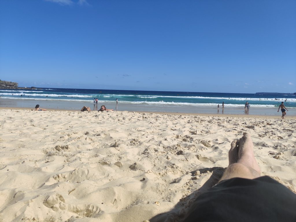 Badehose hatte ich leider vergessen und den Laptop im Rucksack. Entsprechend konnte ich nur bis zu den Knien ins Wasser. War aber trotzdem überwältigend, was die da so nah am Stadtkern einfach an Natur haben. Jedenfalls ist es kurz nach dem letzten Bild dann auch passiert. Ich dachte ich lege mich mal kurz auf meine Jacke und genieße die Sonne. Da hat sich der Kollege Jetlag gemeldet und ich bin direkt eingepennt – bei 30 Grad, in der prallen Sonne. Als ich dann wieder aufgewacht bin, stellte ich panisch fest, dass es zum Glück nur 20 Minuten Nickerchen waren. Das Gesicht hatte aber trotzdem schon gespannt. Das Ergebnis dieser 20 Minuten poste ich hier nicht, aber den meisten von euch ist es vermutlich bekannt. Ich bin dann nach Hause, habe auf dem Weg noch den örtlichen Supermarkt ausgecheckt und bin dann ziemlich aufgeregt eingeschlafen, weil am nächsten Tag der erste Arbeitstag in Sydney anstand.